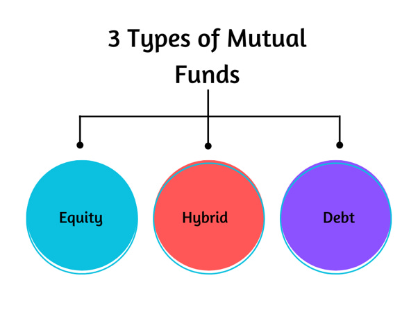 The three types are equity funds, debt funds, and hybrid mutual funds.